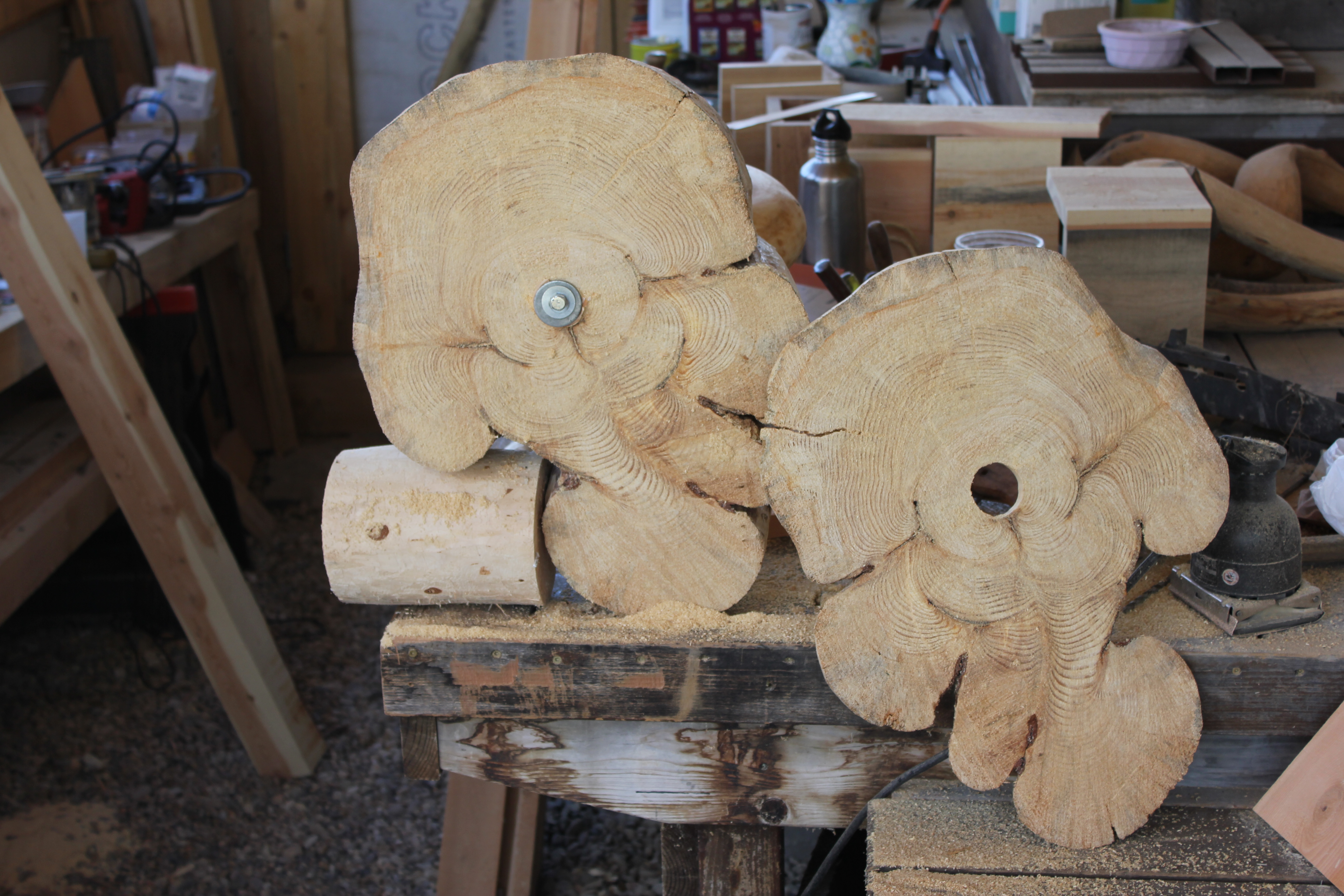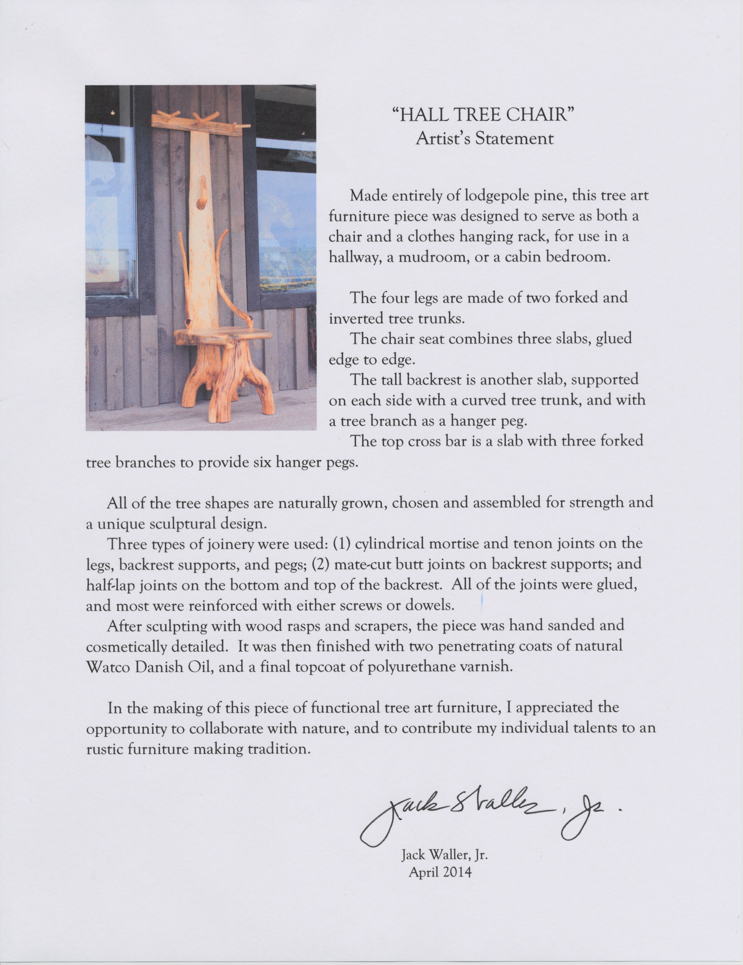 As with the making of tree art furniture and sculpture, an essential challenge comes with choosing types of joinery that accomplish both structural strength and an overall, flowing sculptural unity.