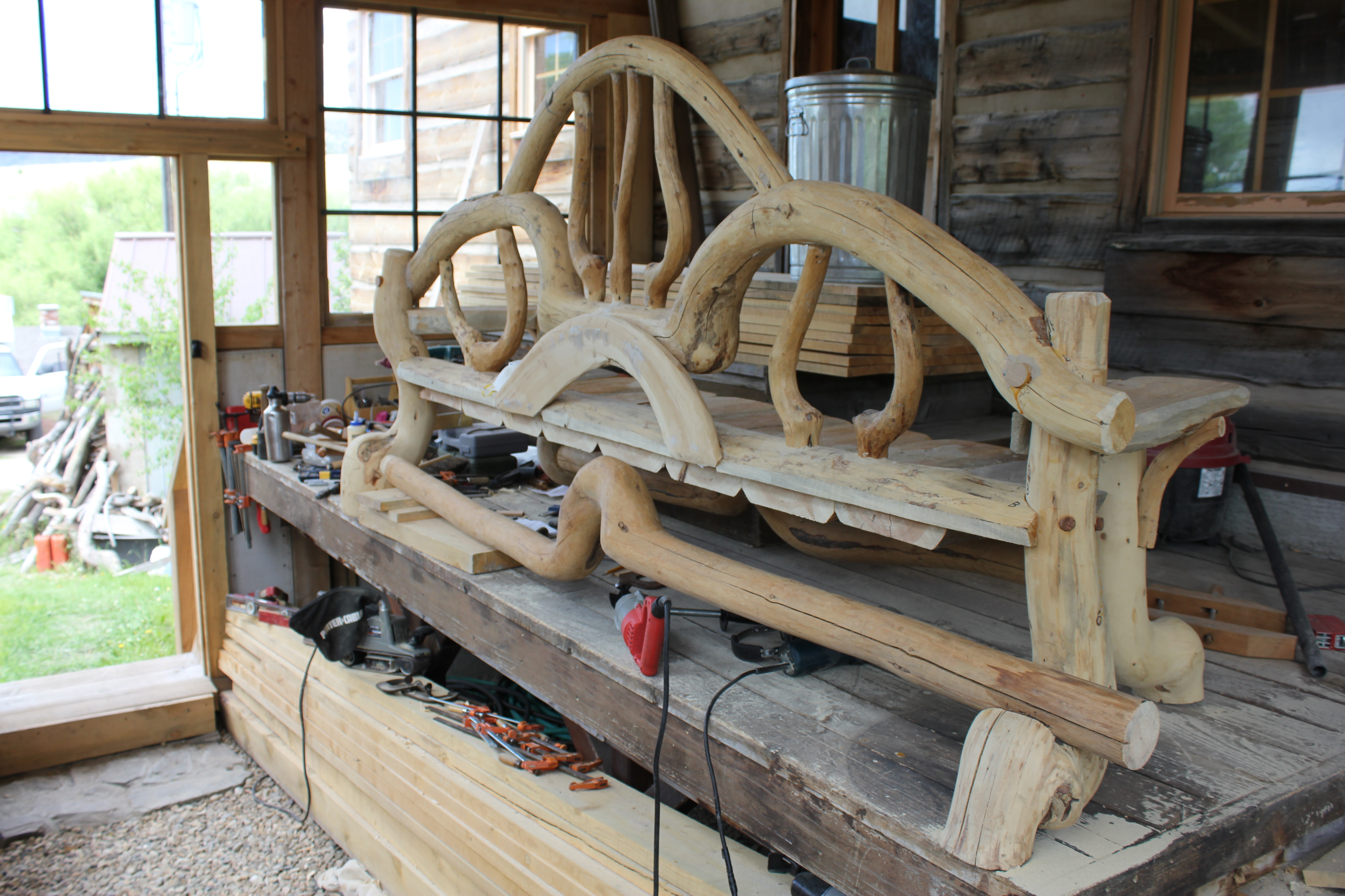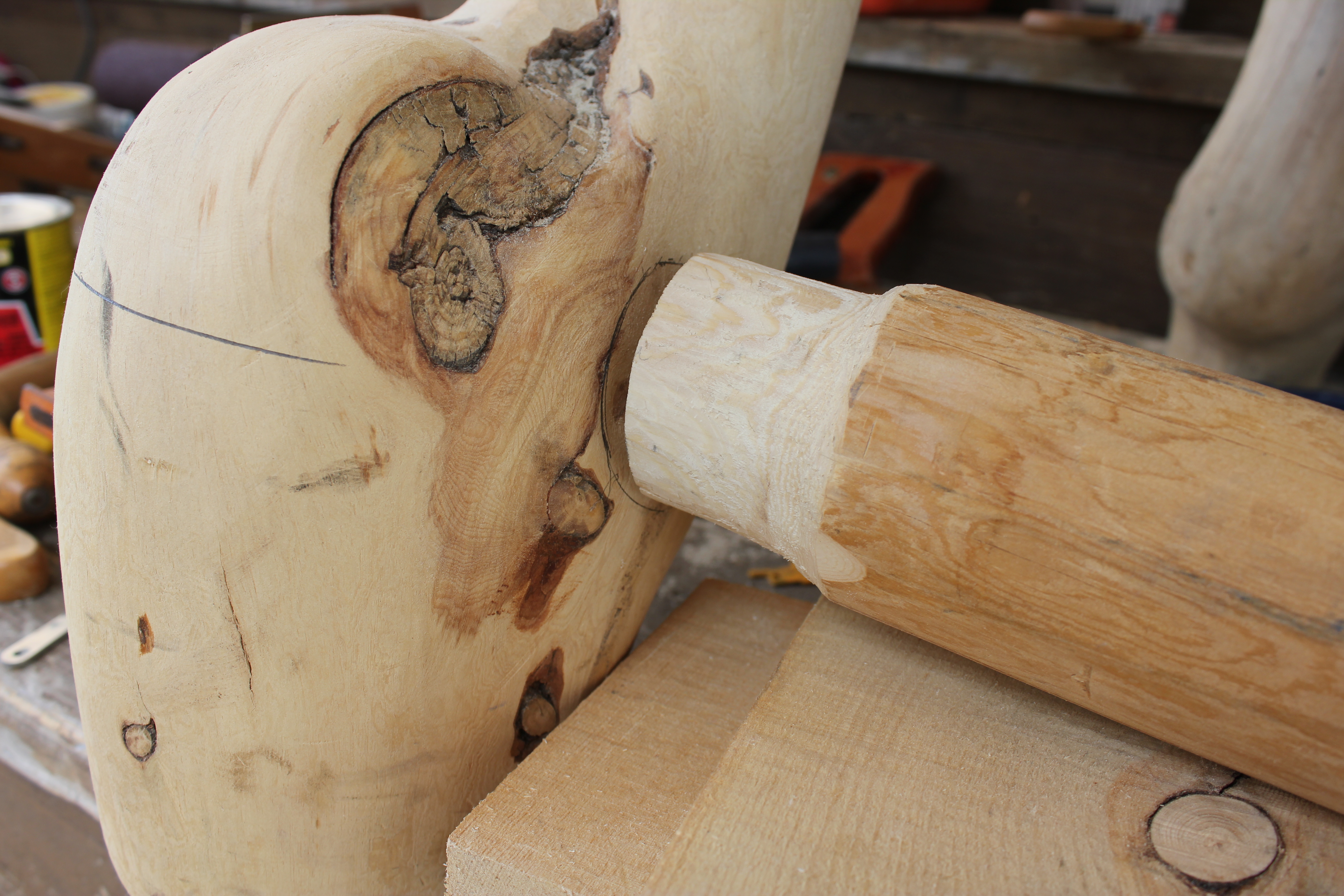 As with the making of tree art furniture and sculpture, an essential challenge comes with choosing types of joinery that accomplish both structural strength and an overall, flowing sculptural unity.